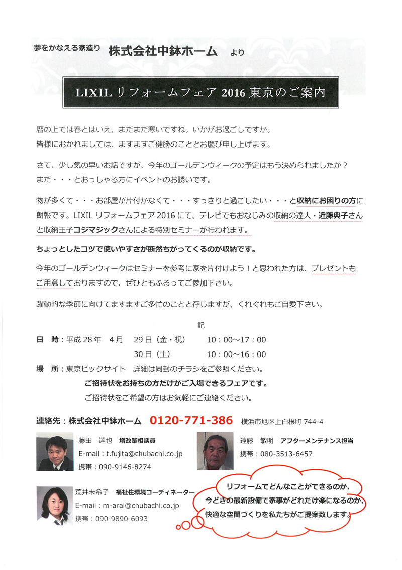 【内容】 リフォームについてもっと見たい、知りたい、聞きたい、確かめたいと